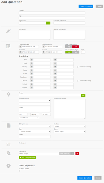 Typical Add Quotation Screen